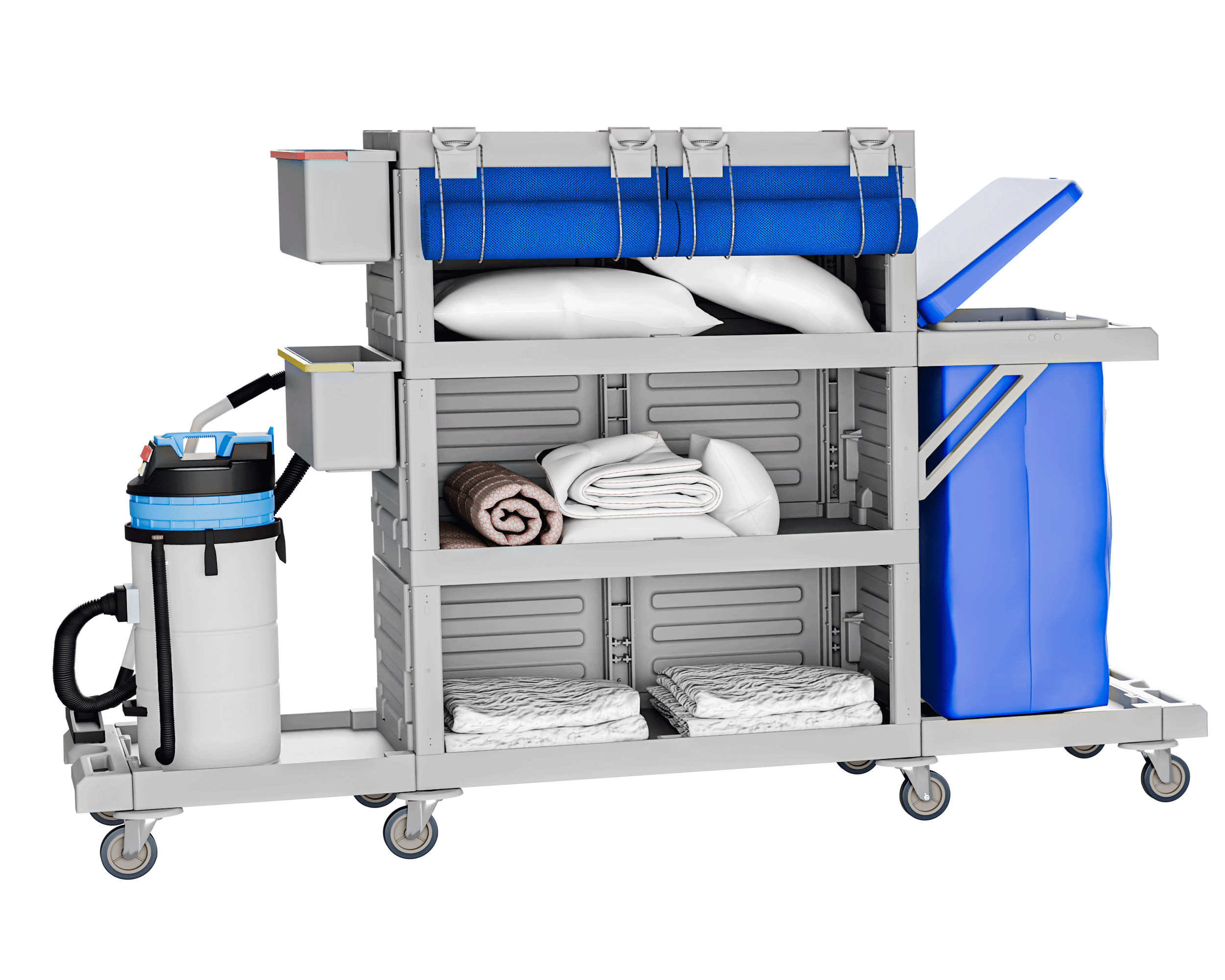 Large Housekeeping Trolley 4 levels with 2 sides bags 120L per each side.
