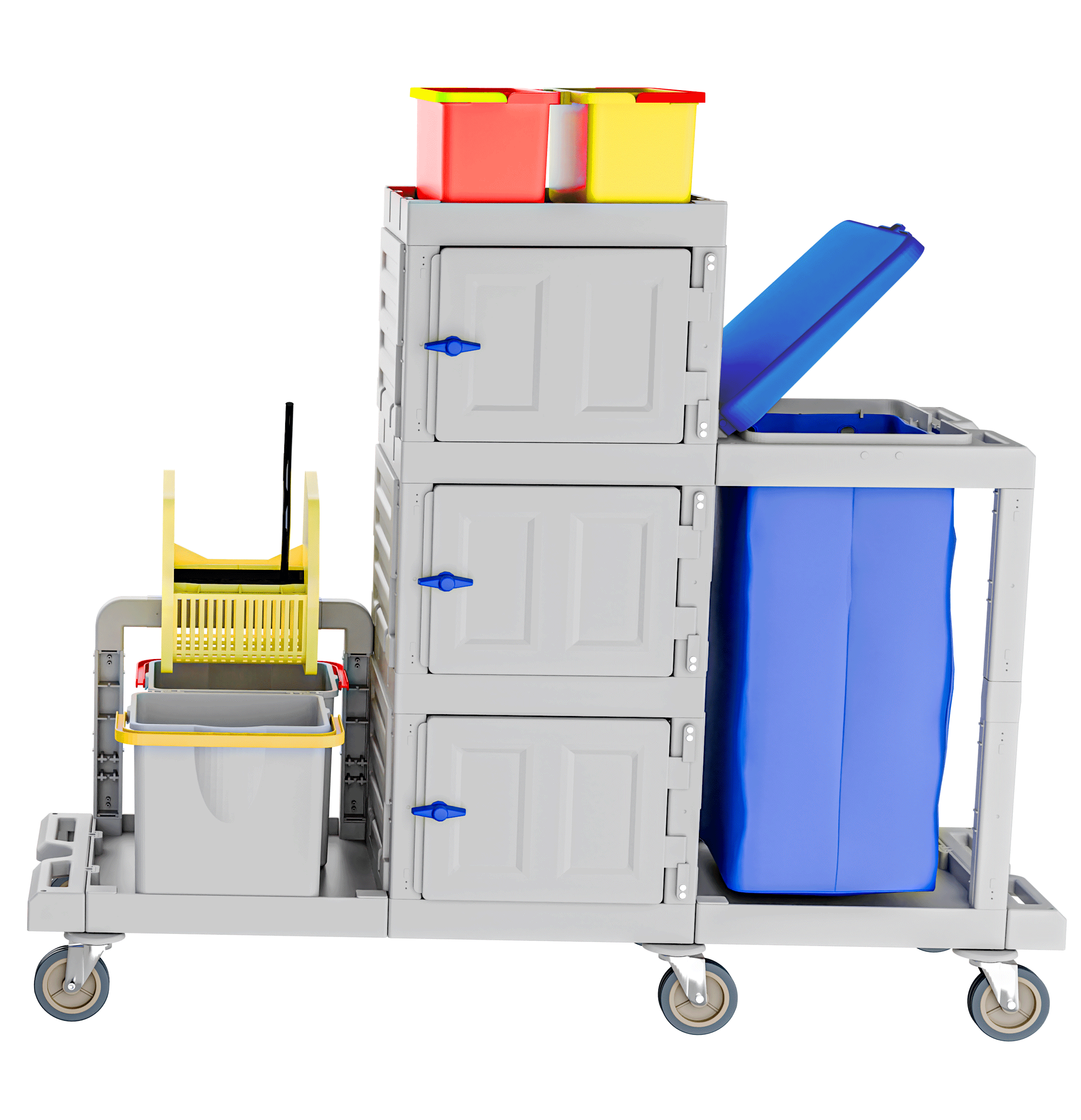 Close public Area trolley 3 levels with 4 bucket, one side vinyle bag and cover